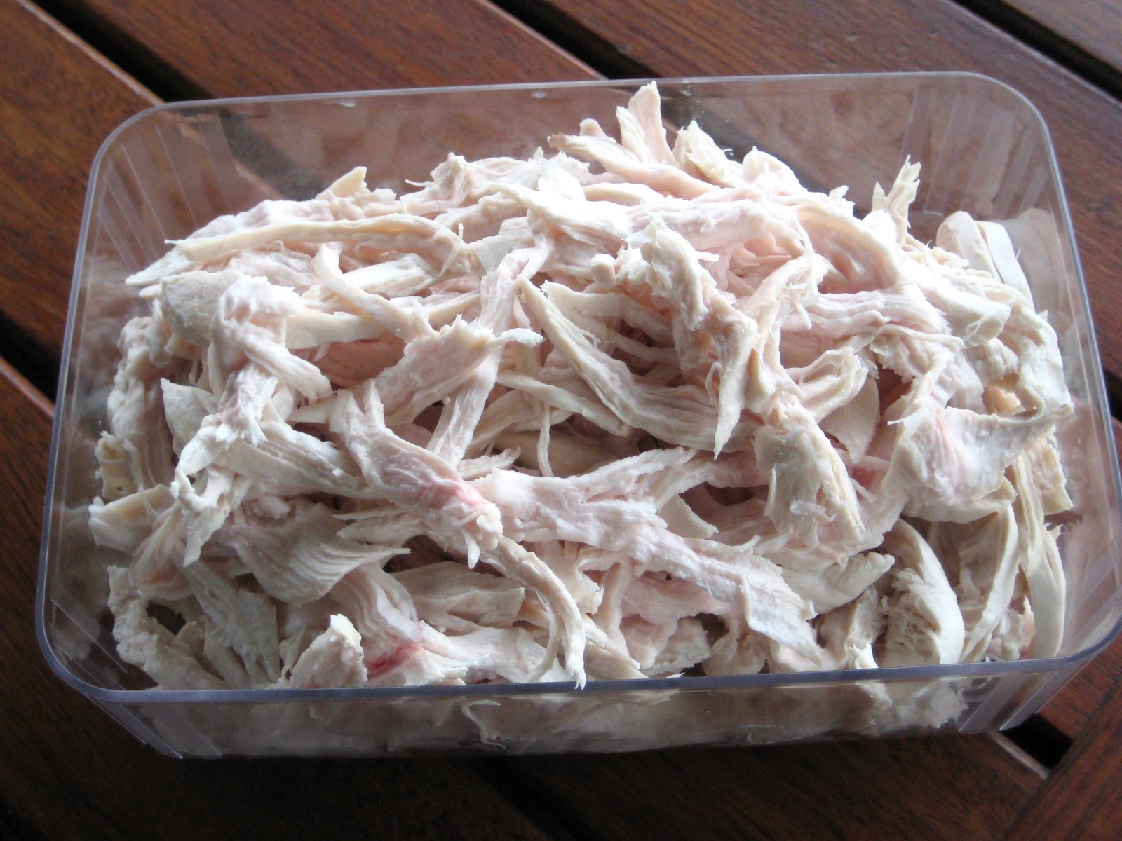| 3 chicken breasts are a lot of shredded chicken! This container is larger than it looks. |