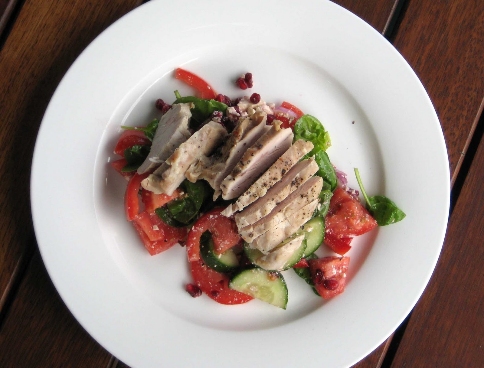 2. In a simple salad with sliced or chopped cucumber, tomato, red pepper, red onion, baby spinach leaves, splash of olive oil and balsamic vinegar