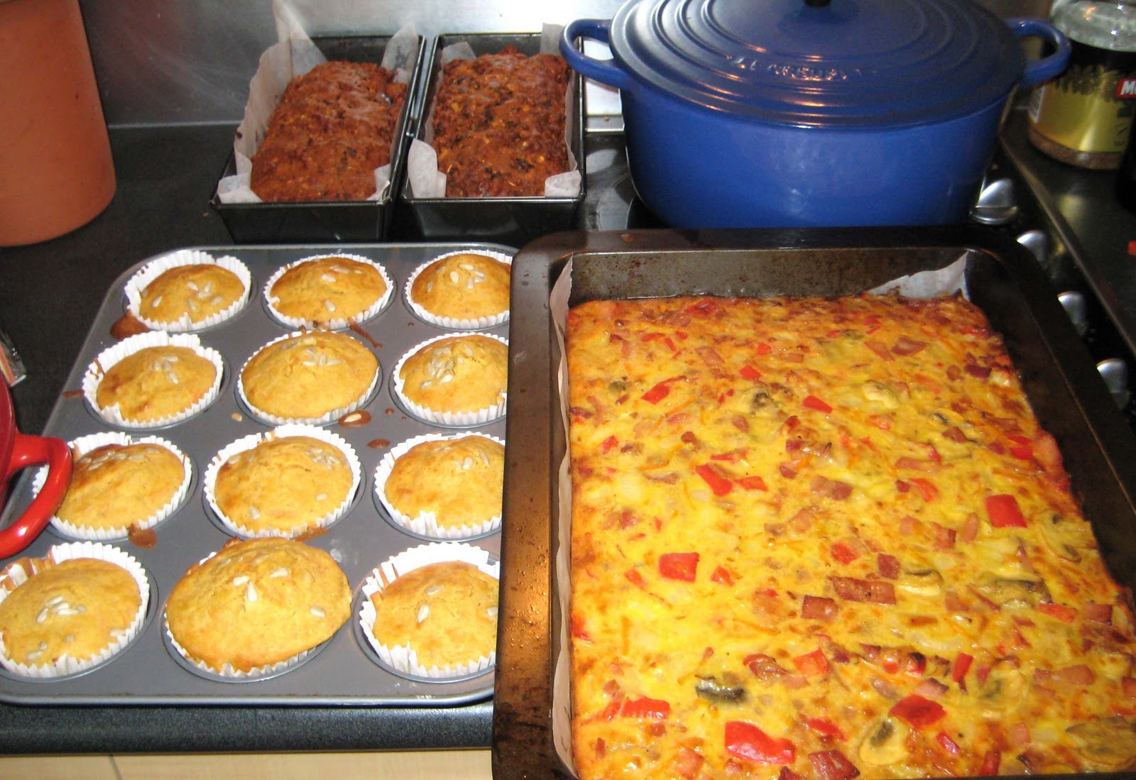 | Egg and dairy free date loaves, gluten free carrot muffins, veggie and bacon slice |