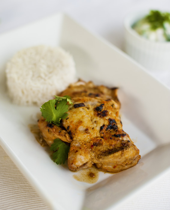 Tandoori chicken is a favourite in this house. Usually courtesy of Patak’s. But not any more! The flavours of each of the spices in this dish – coriander seed, cumin seed, chillis, garlic, ginger – were all so subtle yet blended to give a zing you just don’t get with a pre-made paste.