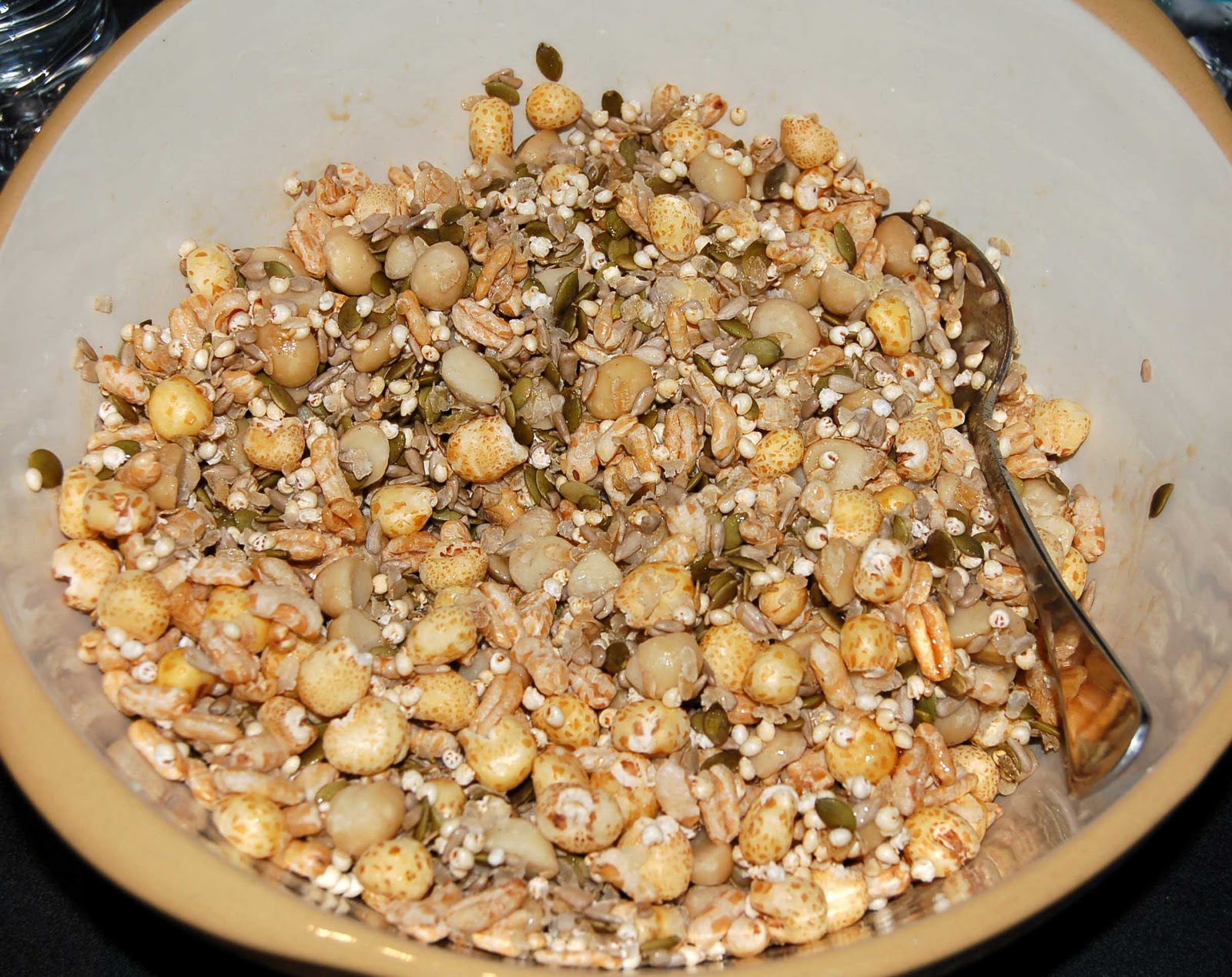 So in my attempt to shed a bit of bacon-induced flab and to get a few more nuts, seeds and grains into my bod, I’m eating this a couple of times a week for my break-the-fast meal.