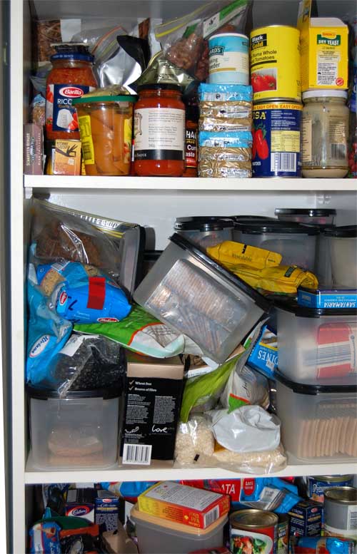 | Horrible pantry with deep shelves – and yes it’s messy… |
