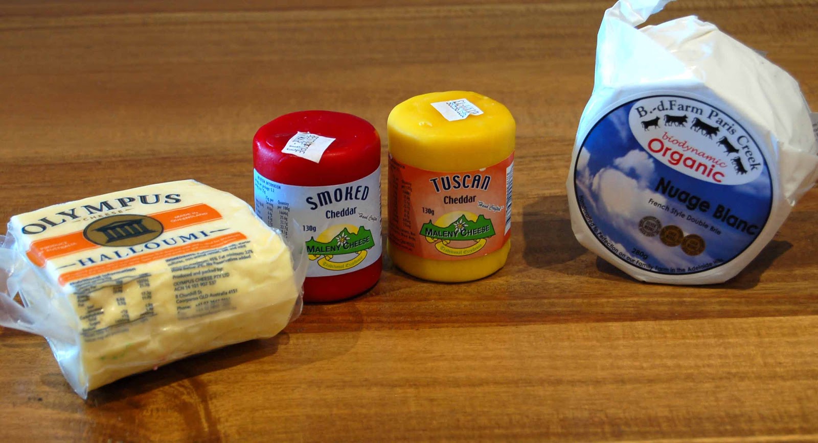Mmmmm cheese. This is a few of what is currently in the fridge. Yes, I’m a bit addicted. I also have ricotta, fetta, cheddar, parmesan and a few dregs of a blue I bought in Adelaide earlier in the month – it reached the stinky-shoe-smell stage just as I arrived back in Brisbane. Pretty sure the other passengers on my flight didn’t need to smell that. Olympus haloumi is a favourite, and also made locally in Brisbane. The yellow and red cheeses are from Maleny CheeseΒ (I really must go there one day!). These three I picked up at the Good Food and Wine Show recently. The organic Brie style is a favourite I get from Woollies every now and then.