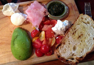 | The breakfast board at The Grounds of Alexandria. Poached egg, avocado, leg ham, tomato basil salsa, pesto, persian fetta, sourdough. Doesn’t look like a lot but it was an effort to eat it all. |