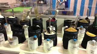 | Some of the salts at Salt, Meats Cheese. Varieties included espresso, merlot, garlic, smoked, taragon, tomato, truffle, and about another 10-12 varieties |